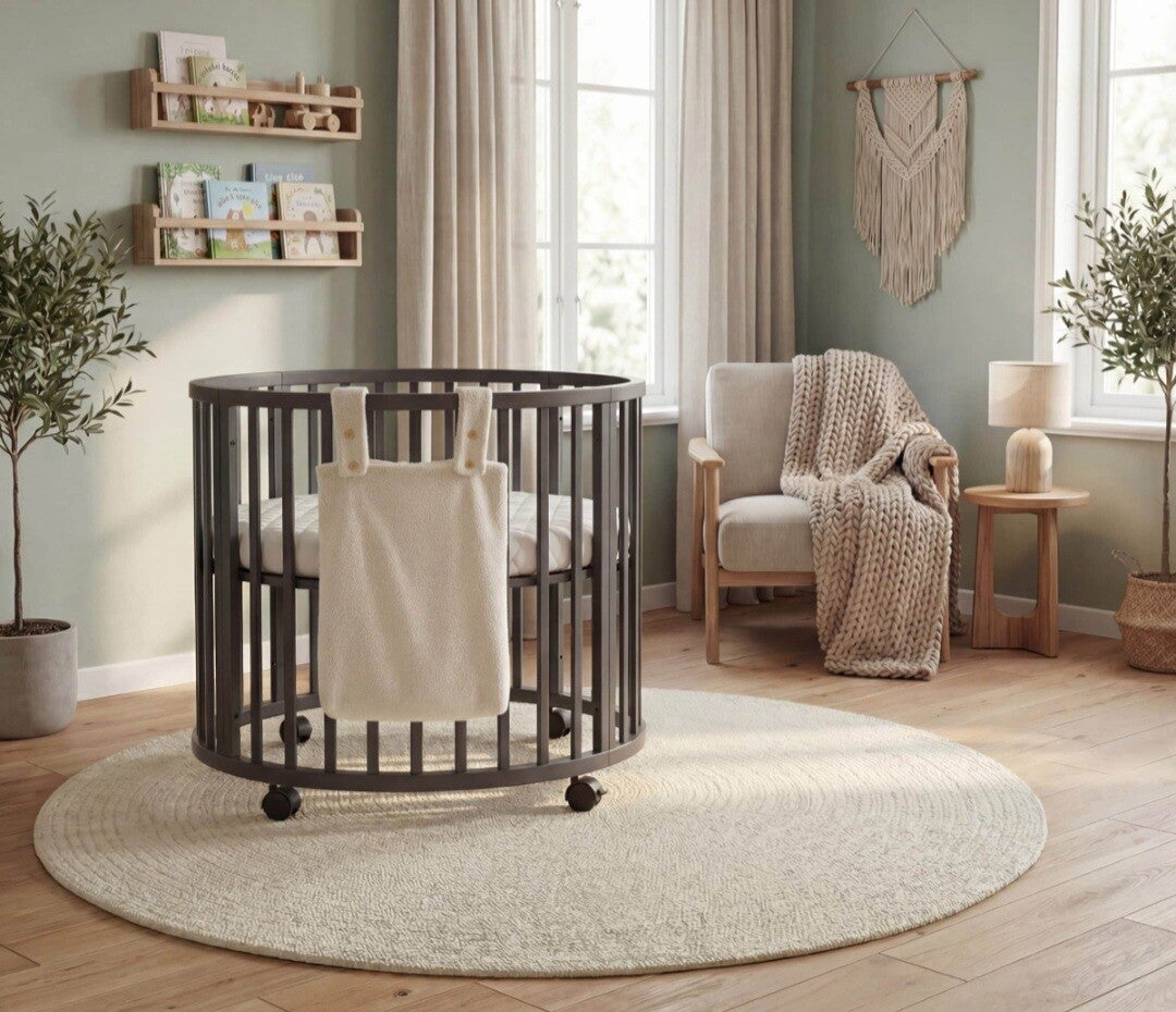 De opbergzak is gemaakt van een zachte teddy stof in een warme, neutrale tint die prachtig past in elk modern interieur.